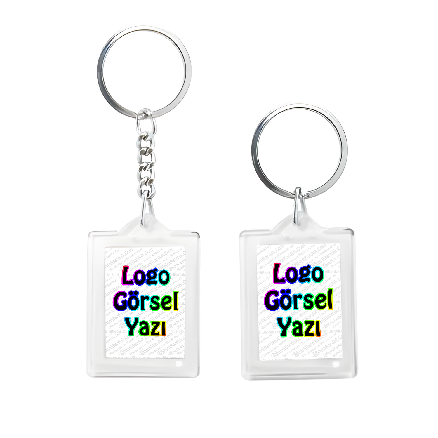 Toptan promosyon anahtarlık siparişiniz, çift yön renkli baskılı, zincirli ve zincirsiz seçeneği ile gönderilmektedir.